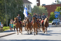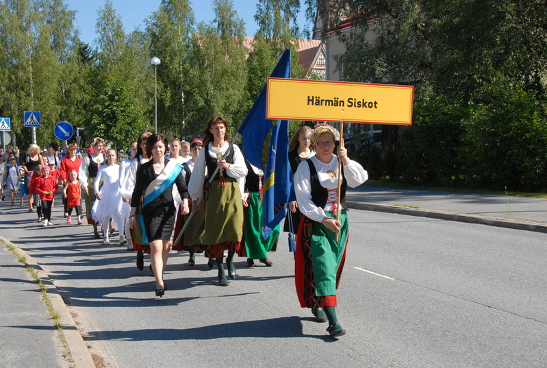 Johtokunnan jäsenet laskivat seppeleen sankaripatsaalle sekä Härmän Siskojen perustajajäsenien haudoille. Kuva: Mira Niemi |  Johtokunnan jäsenet laskivat seppeleen sankaripatsaalle sekä Härmän Siskojen perustajajäsenien haudoille. Kuva: Mira Niemi |  Juhlakulkue koulukeskukselle toteutettiin yhteistyössä Kauhavan Ratsastusseuran kanssa. Kuva: Mira Niemi |