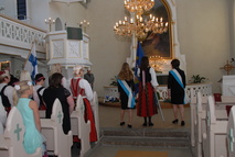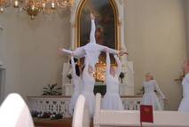 Sunnuntain pääjuhlapäivä aloitettiin juhlahartaudella Alahärmän kirkossa. Kuva: Mira Niemi |  Kirkossa nähtiin myös voimistelua, Safine esitti Hallelujah-esityksensä. Kuva: Mira Niemi |  Kirkossa nähtiin myös voimistelua, Safine esitti Hallelujah-esityksensä. Kuva: Mira Niemi |
