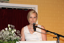 ![]() Seuran puheenjohtaja Päivi Sillanpää lausui tervetuliaissanat. Kuva: Anne Katajamäki | ![]() Antti Railio lauloi juhlassa kahteen kertaan. Kuva: Anne Katajamäki | ![]() Johanna Tuuri jututti Anttia, joka kertoi olleensa lapsena innokas yleisurheilija. Antti kehotti kaikkia uskomaan itseensä ja kulkemaan sisukkaasti kohti omia tavoitteitaan. Kuva: Mira Niemi |