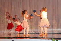 ![]() Niina Övermark ja Heli Luoma jakoivat ansioituneille ohjaajille SVOL:n ohjaajamerkit. Kuva: Anne Katajamäki | ![]() Antti Railio esitti ansiomerkkien saajille onnitteluserenadin. Kuva: Anne Katajamäki | ![]() Voimisteluesitys, Kesäsade, Safine. Kuva: Anne Katajamäki |